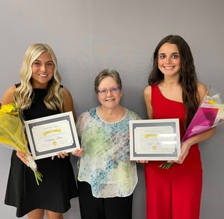 Congratulations to the Spring 2025 Mary Kathryn Wheeler Foundation Future Educator Scholarship recipients: Madison Blair (left) and Kylie Jones (right). The awards were presented by Carol Doss (center).